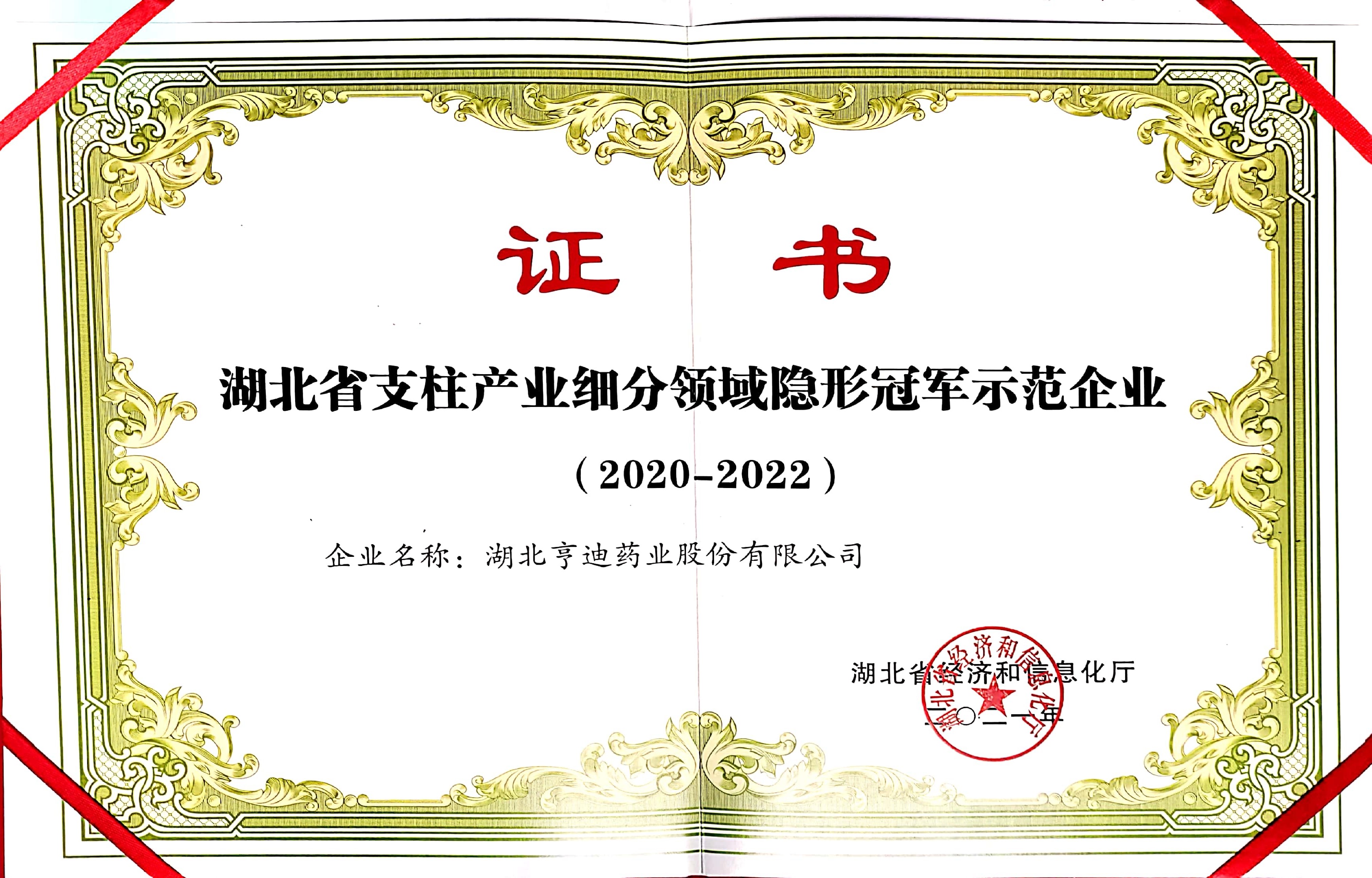 • 2020年 江苏第四批支柱产业细分领域隐形冠军示范企业